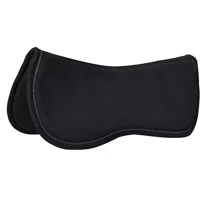 Experience the ultimate comfort and style with our new shock-absorbing saddle pad. Made with vegan suede and finished with decorative piping, this pad is not only stylish but also cruelty-free. The soft fleece lining adds an extra layer of luxury, ensuring your horse stays comfortable during long rides. Designed to fit seamlessly under GP\/DR saddles, this saddle pad is a must-have for any equestrian enthusiast. Treat your horse to the best with our shock-absorbing saddle pad.