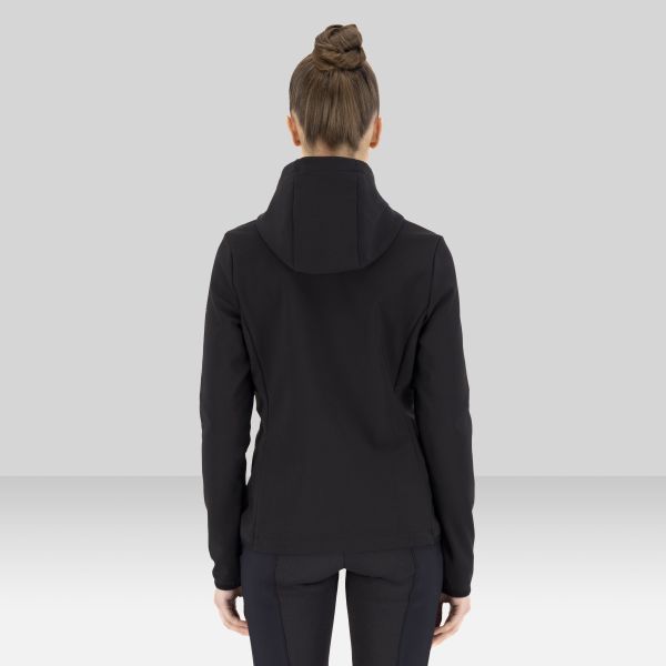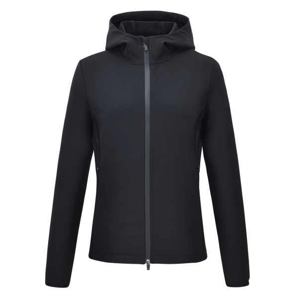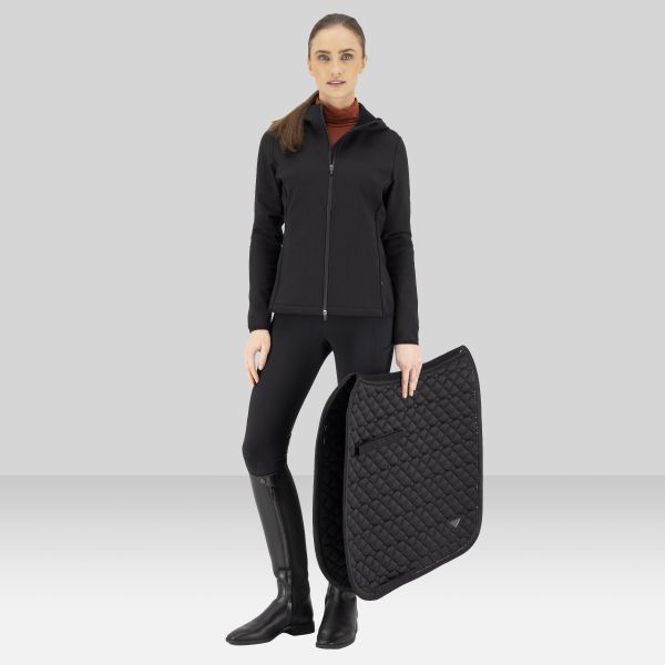 Elevate your equestrian wardrobe with the ES-Maddy Cardigan, where cutting-edge innovation meets sophisticated style. Designed for the discerning rider, this cardigan boasts a technically advanced 4-way stretch fabric that ensures unrestricted movement in and out of the saddle, allowing you to perform at your best. Whether you're schooling your dressage horse or enjoying a leisurely hack, the thoughtful details like the practical 2-way zipper with a chin protector offer ultimate comfort and functionality. Its cozy hood provides extra warmth on cooler days, while the sleek blind zip pockets keep your essentials secure. And for that touch of exclusive elegance, you'll love the dazzling rhinestone artwork on the sleeve. This isn't just a cardigan; it's a statement of performance and panache for every passionate rider.