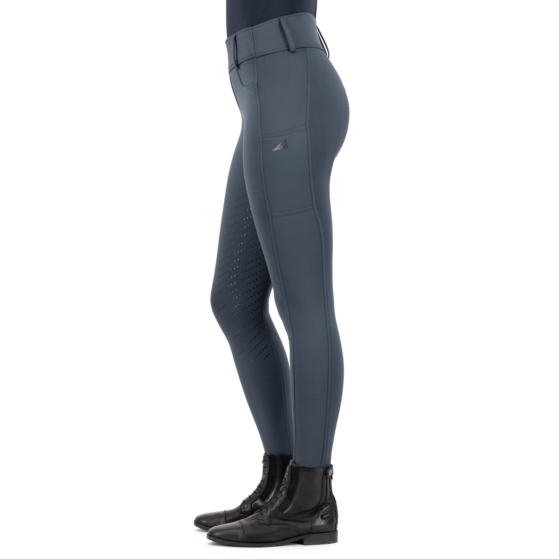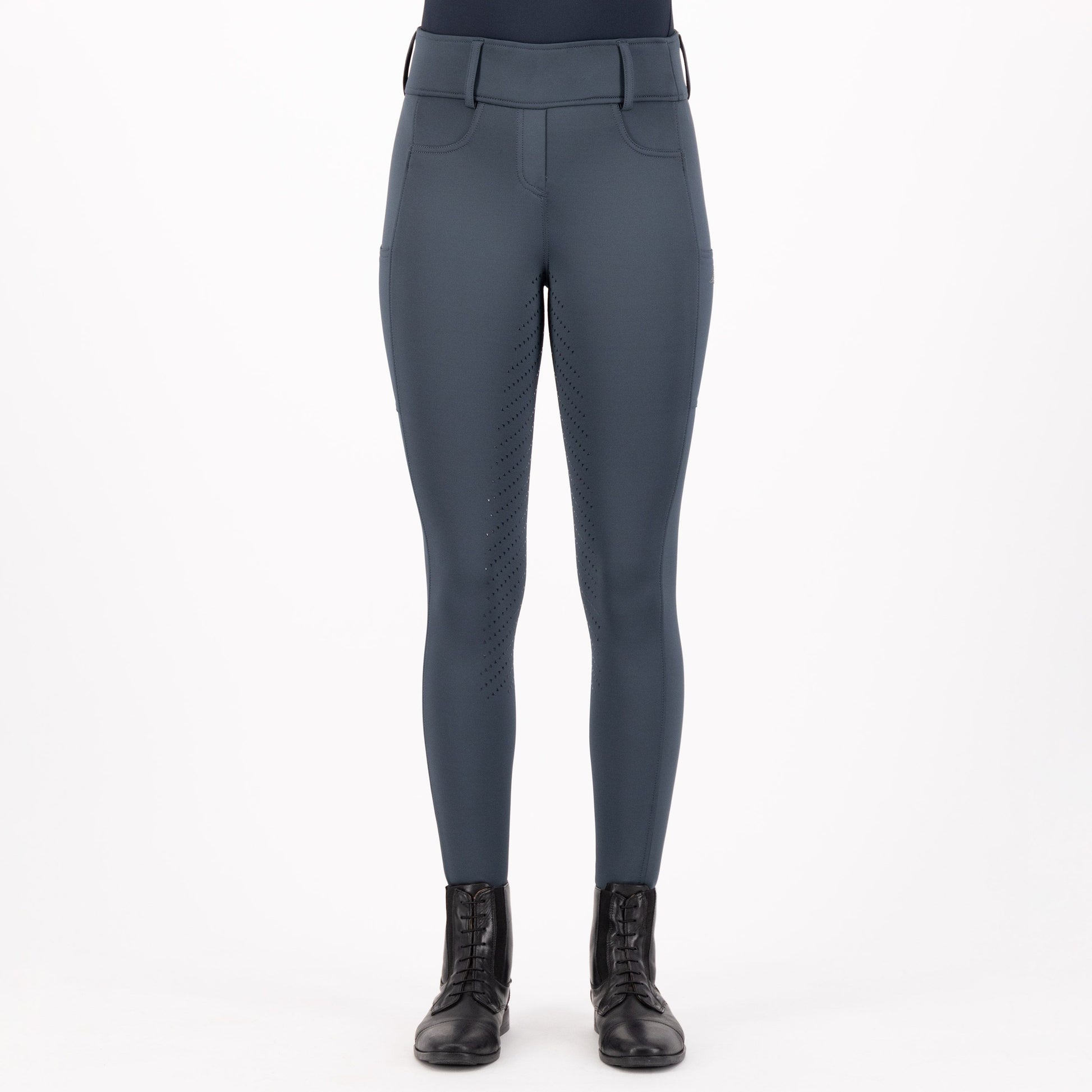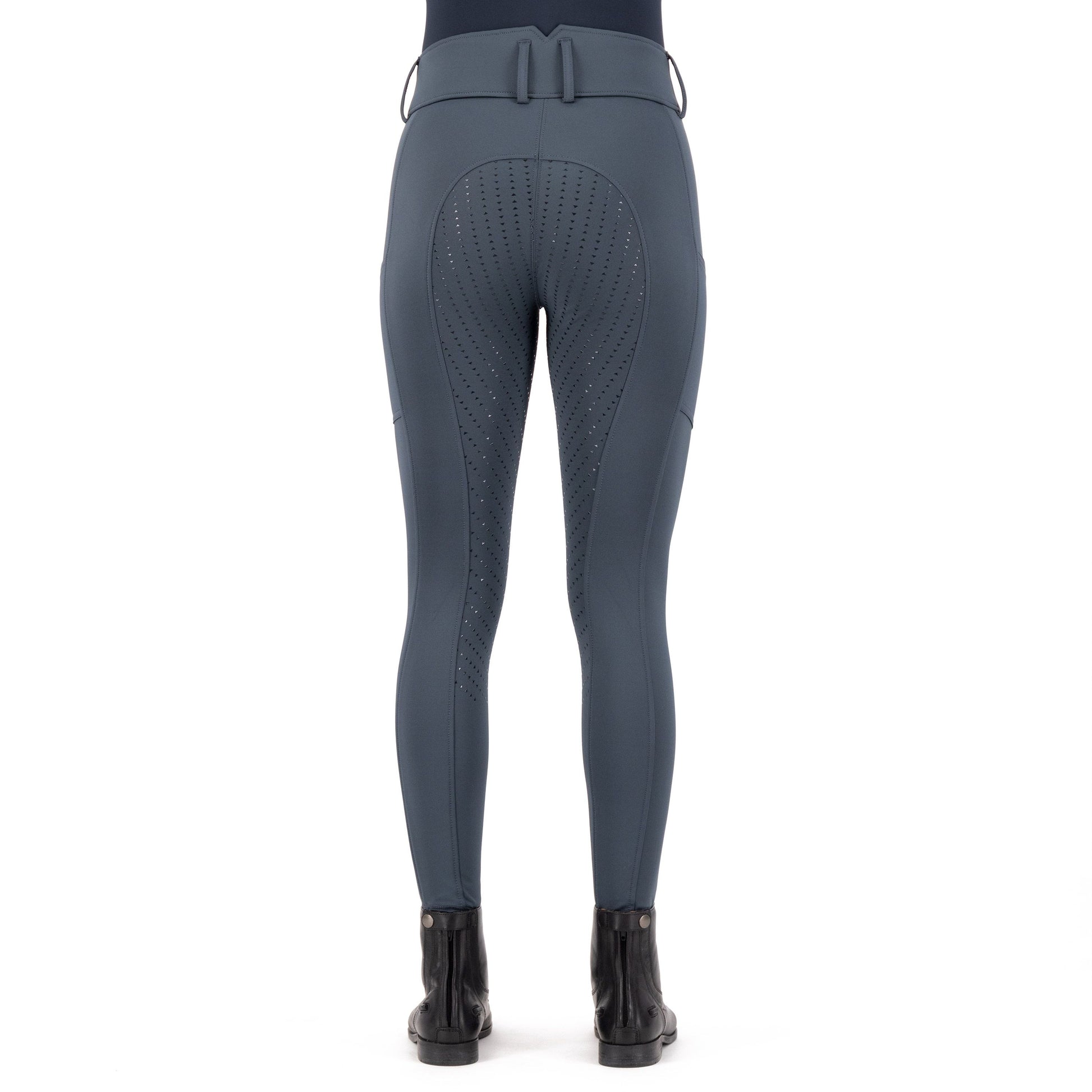 "Stay stylish and comfortable in the saddle with our RIDINGBR! Featuring brushed fabric for warmth, phone pockets, rhinestone artwork, and a high-waisted V-split design. #equestrianstyle"