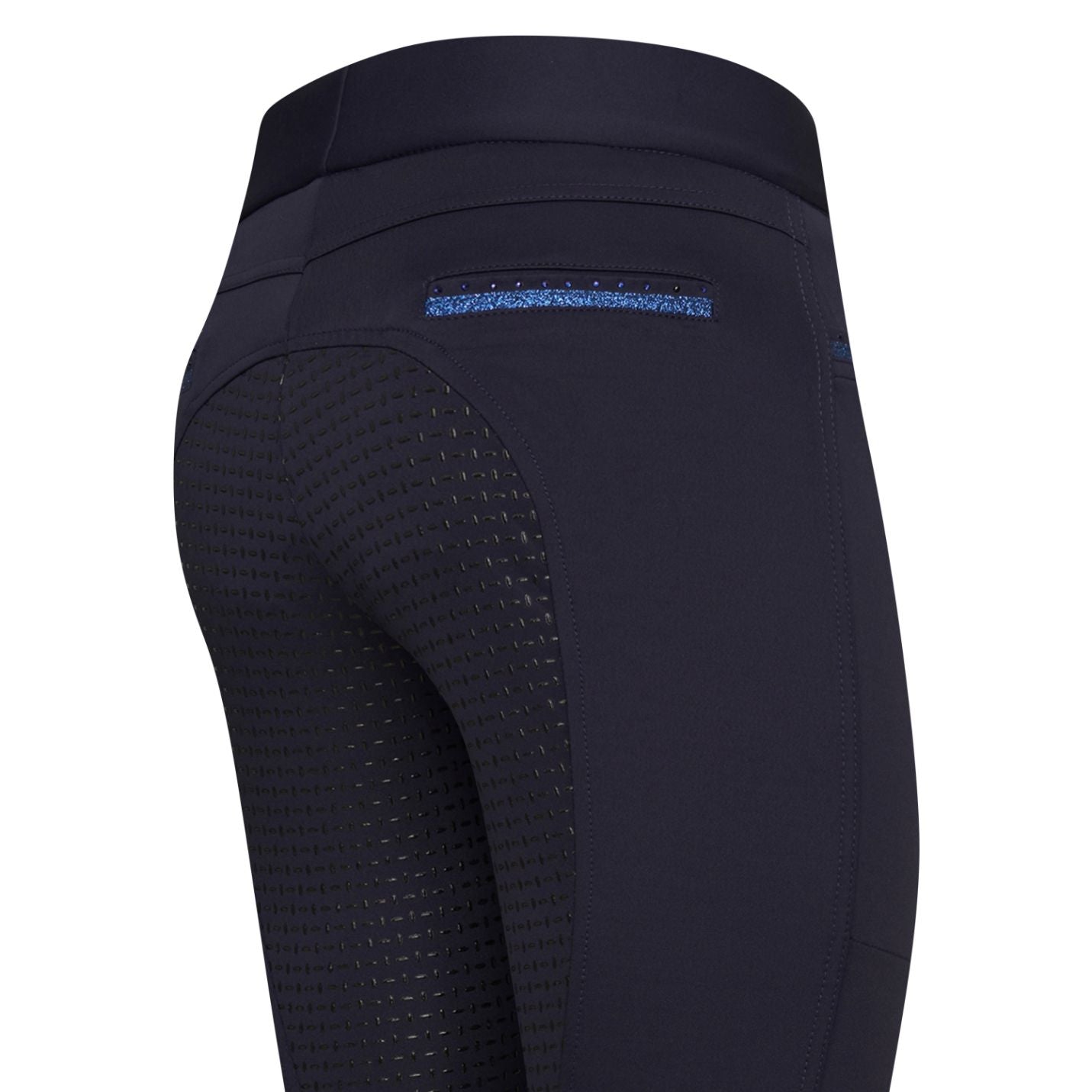 This light weight and soft pair of riding tights is the sister of our bestselling riding breeches 'El Capone'. For everybody who wants the same glittery details, but prefers to ride in tights, don't miss out! The riding tights are made from a very comfortable 4-way stretch, soft all season fabric. With glittery details on both front and back pockets for an extra fancy look. The front pockets are extra deep, so you can store your phone in your pockets during horse riding. These tights are very comfortable to move in, due to the 4 way stretch and they're available in a range of fun and fashionable colors! With Silicon FullGrip for extra grip in the saddle.