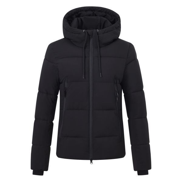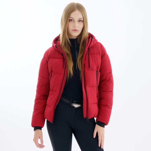 Experience unmatched warmth and sophisticated style with the ES-Carmey Jacket, thoughtfully designed for riders who demand exceptional performance without compromising on elegance. Crafted to blend seamlessly into an equestrian lifestyle, this meticulously padded jacket keeps you comfortably warm, while enhancing your silhouette thanks to adjustable drawstrings. Its comfy hood and soft inner cuffs protect effortlessly against chilly breezes, ensuring cosy comfort during early mornings at the yard or chilly afternoons spent training. The practical two-way zipper with integrated windcatcher delivers versatile comfort in the saddle and on the ground. Finished with a distinguished raised rubber logo, this jacket embodies euro-star's commitment to innovation, quality, and exclusivity.