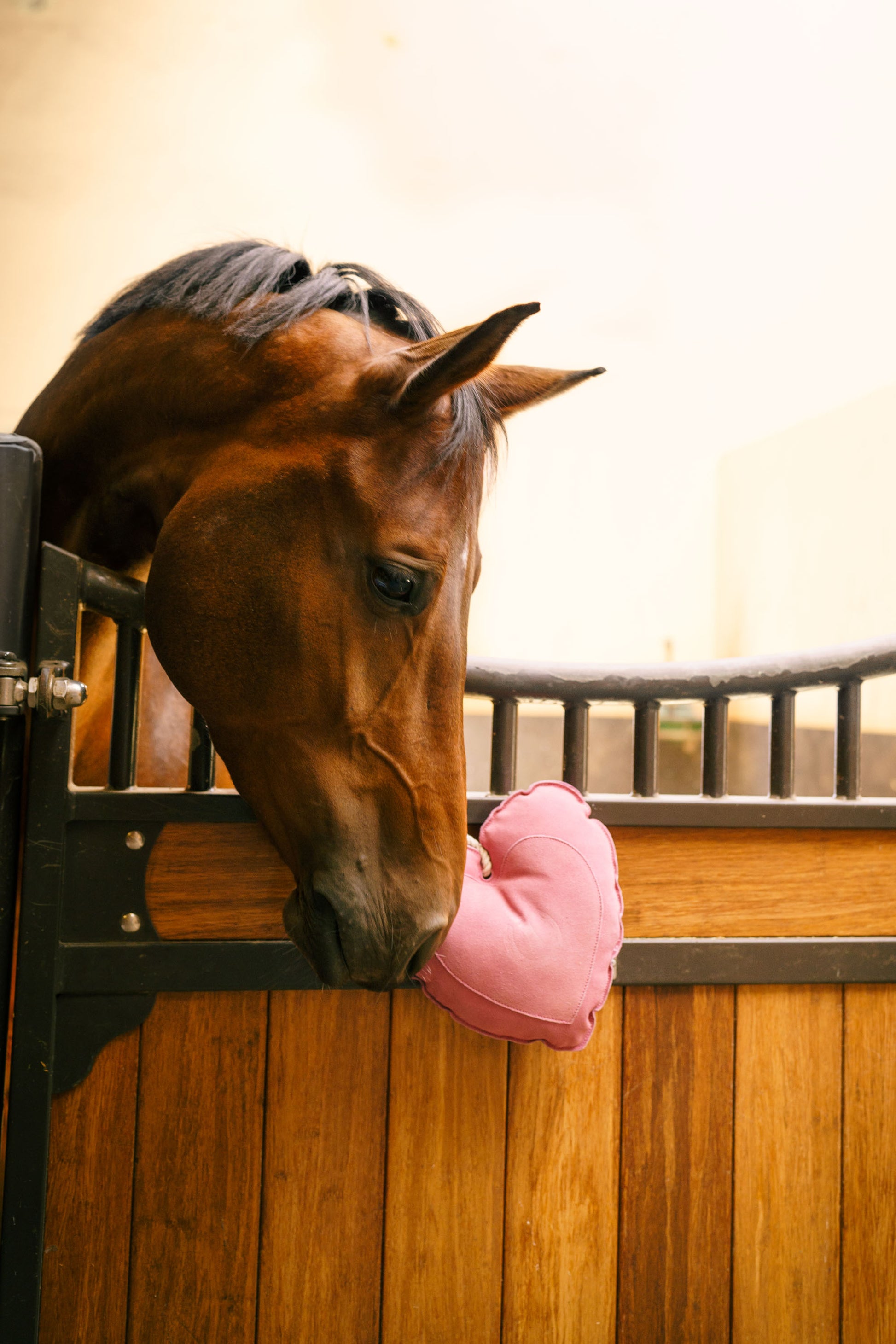 Noul cel mai bun prieten al cailor tăi - prietenul nostru Imperial Riding Stable! Designul drăguț al jucariei este realizat din piele de căprioară cu umplutură din fibre de poliester. Poate fi atârnat în grajd de o frânghie pentru ca calul tău să se joace.