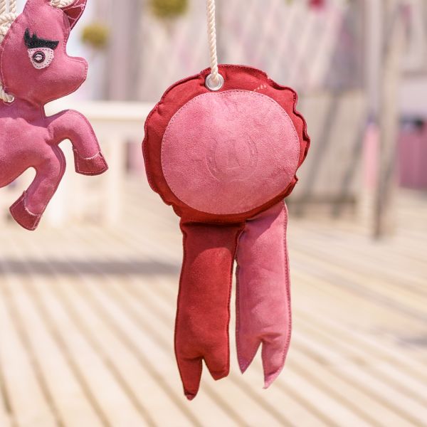 Your horses new best friend - our Imperial Riding Stable buddy! The cute Buddy design is made from suede leather with polyester fiber filling. It can be hung in the stable by a rope for your horse to play with.