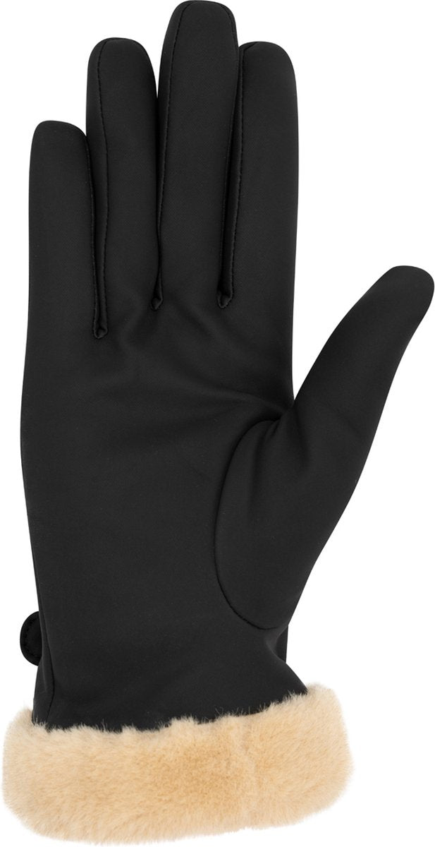 - Fashionable glove with soft and warm faux-fur material at wrist with HV metal coin at strap.