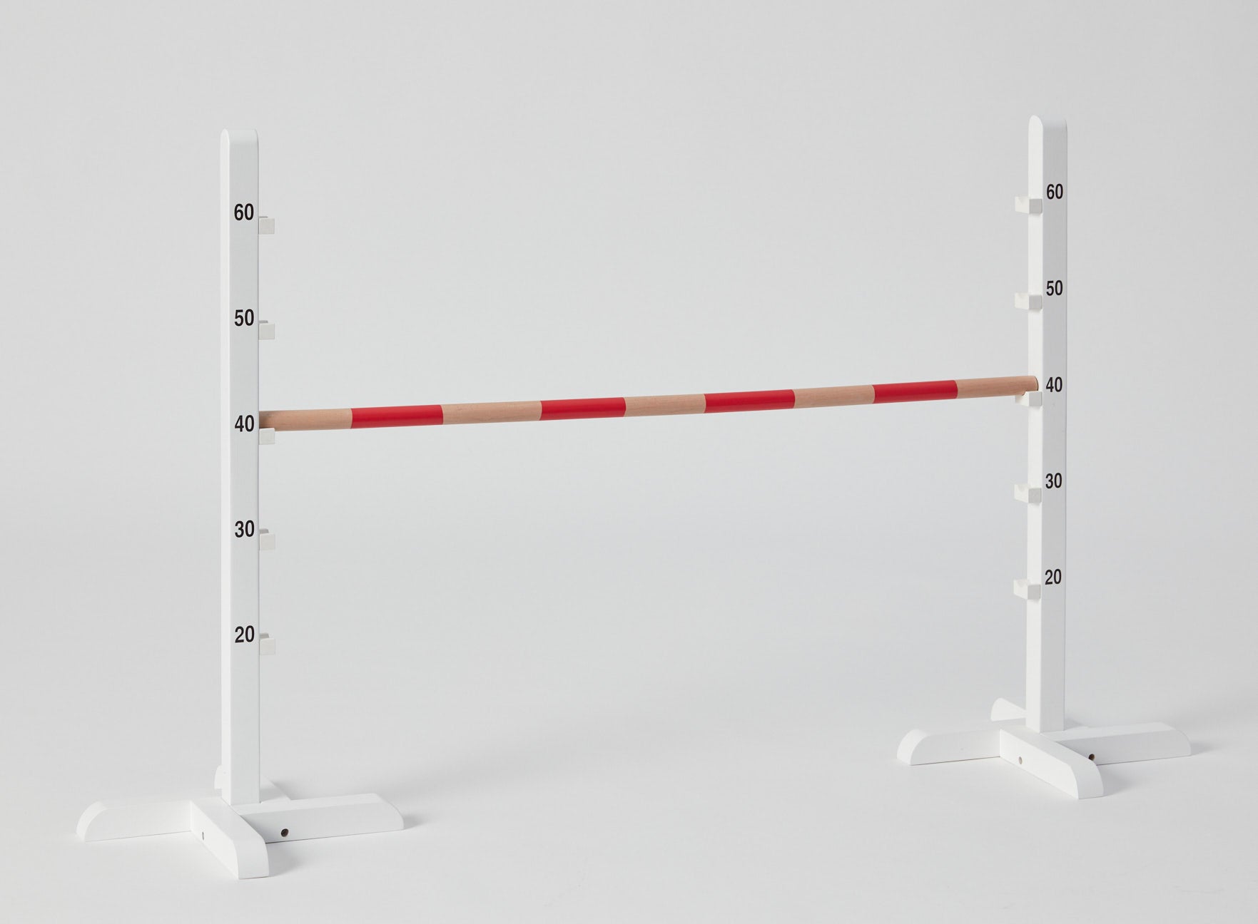 The bar can be set at a height from 20 cm to 60 cm and is designed to fall easily out of the holders, thereby minimising the risk of accidents.