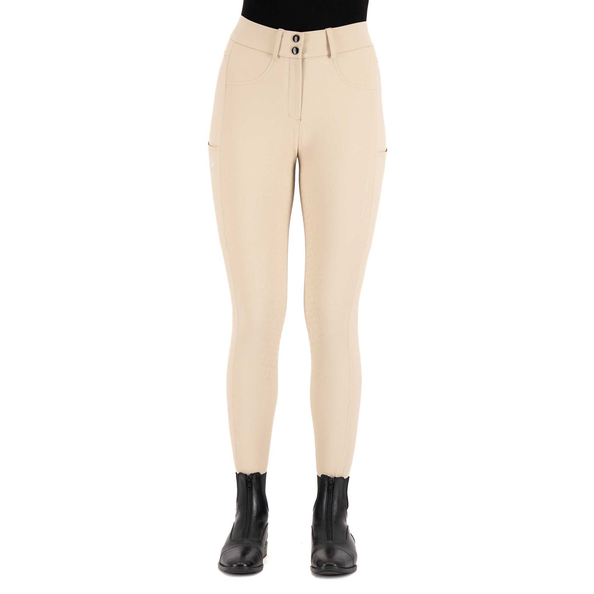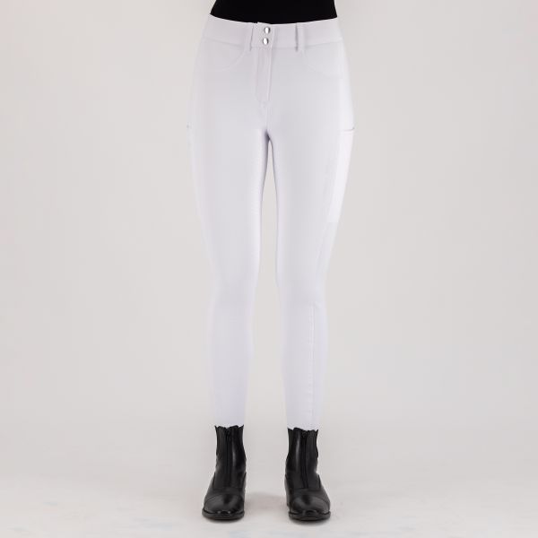 Sporty and clean aesthetic * Elegant lines following the natural flow of the body * Branded silicon grip * Direct grip * Embroidered logo on left leg * Branded rivets along the front pockets * Round shaped fake pockets in the front * Shape defining back yoke * Beltloops along waistline * Closure with 2 hooks and eyes * Phonepockets on both sides * Satin jaquard elastic tape inside waistband for a perfect fit around the waist
