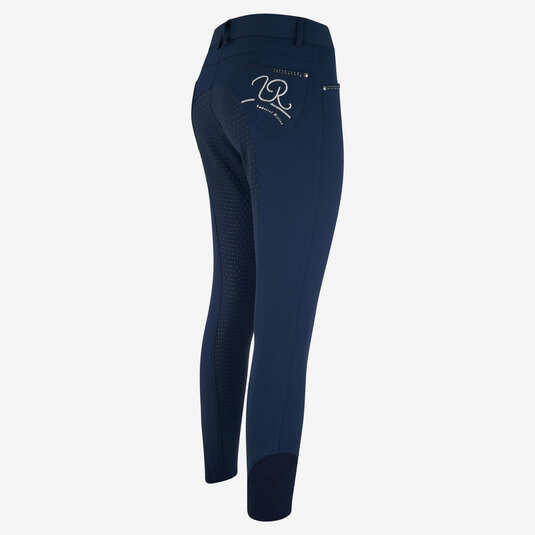 Pantaloni de călărie de lux din materialul celor mai vânduți pantaloni Isidro. Strasuri frumoase la buzunarele din față și din spate. Buzunare din spate cu paiete în formă de trifoi norocos și logo brodat frumos. Cu grip din silicon.