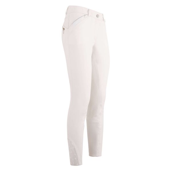 These comfortable breeches combine a perfect fit with sophisticated design. The silicone print on the seat is embellished with silver stars whereas the silicone on the inside of the legs is matte. The star motif can be found everywhere: on the elastic net inserts on the lower end of the legs as piping on the zipped pockets on the front of the garment and as decoration above the rear zipped pockets. On the left leg the marking on the side is displayed in shiny letters. Thanks to the Flexlegs you no longer have to close your breeches at the bottom. The 2-way stretch fabric is particularly comfortable to wear.