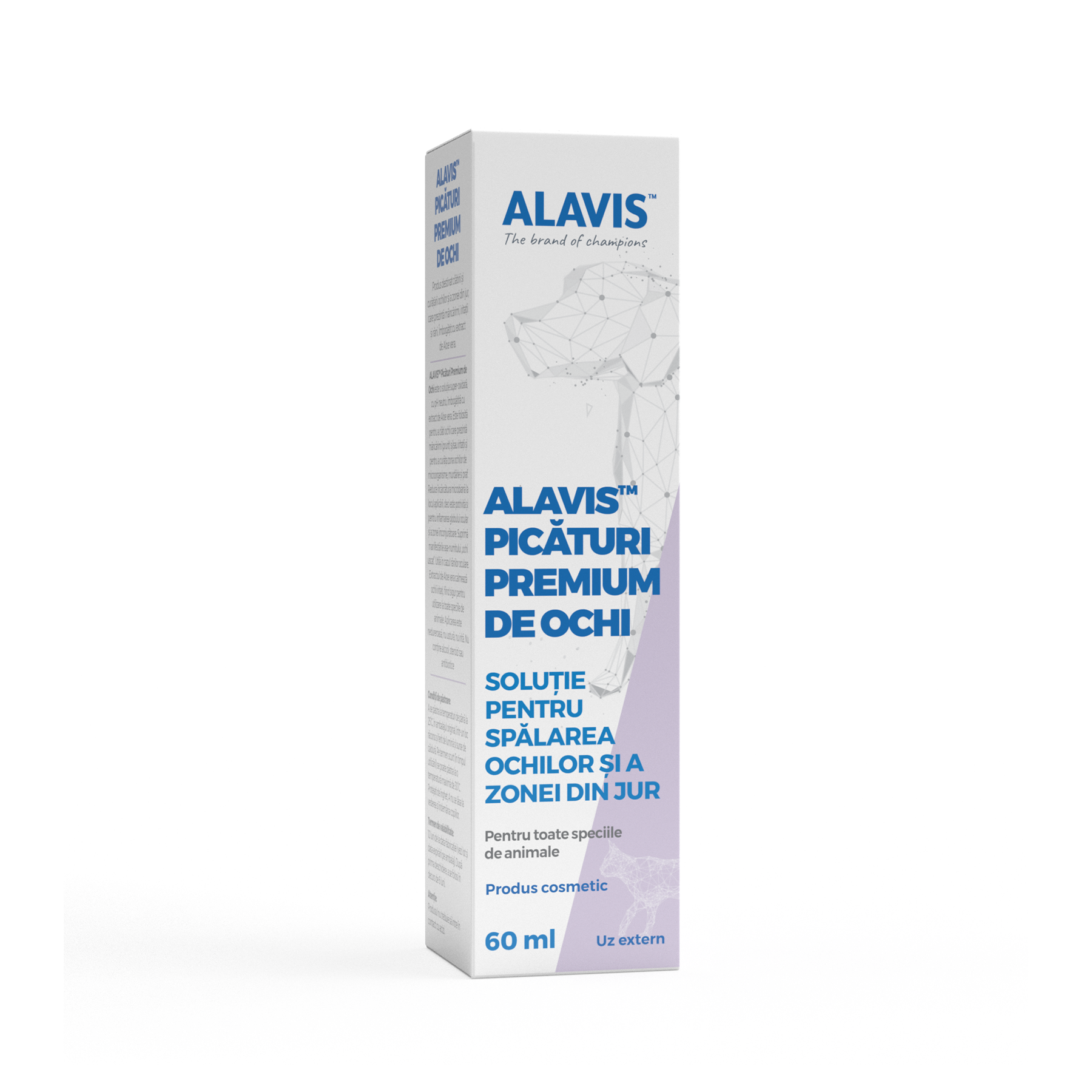 ALAVIS™ PICATURI PREMIUM DE OCHI este o solutie pentru spalarea ochilor si a zonei din jur la toate speciile de animale. Produs destinat clatirii si curatarii ochilor si a zonei din jur, care prezinta mancarimi, iritatii si rani. Imbogatit cu extract de Aloe vera. Suprima manifestarile asa-numitului „ochi uscat”. Utila in cazul ranilor oculare. Nu contine alcool, steroizi sau antibiotice.
