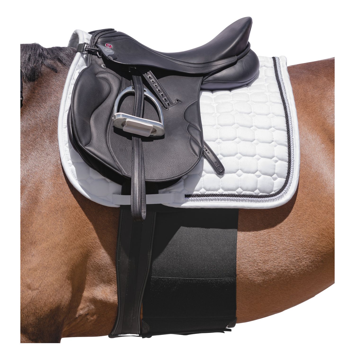 The sturdy spur protection belt from black forest wraps around the horse's belly like a second skin and has soft Hippopren® padding in the area of the wide Velcro fastener. The breathable material is soft, extremely durable and very elastic. With continuously adjustable Velcro loops for attaching to the saddle girth and adjustable straps with clips for attaching to the D-rings of the saddle.