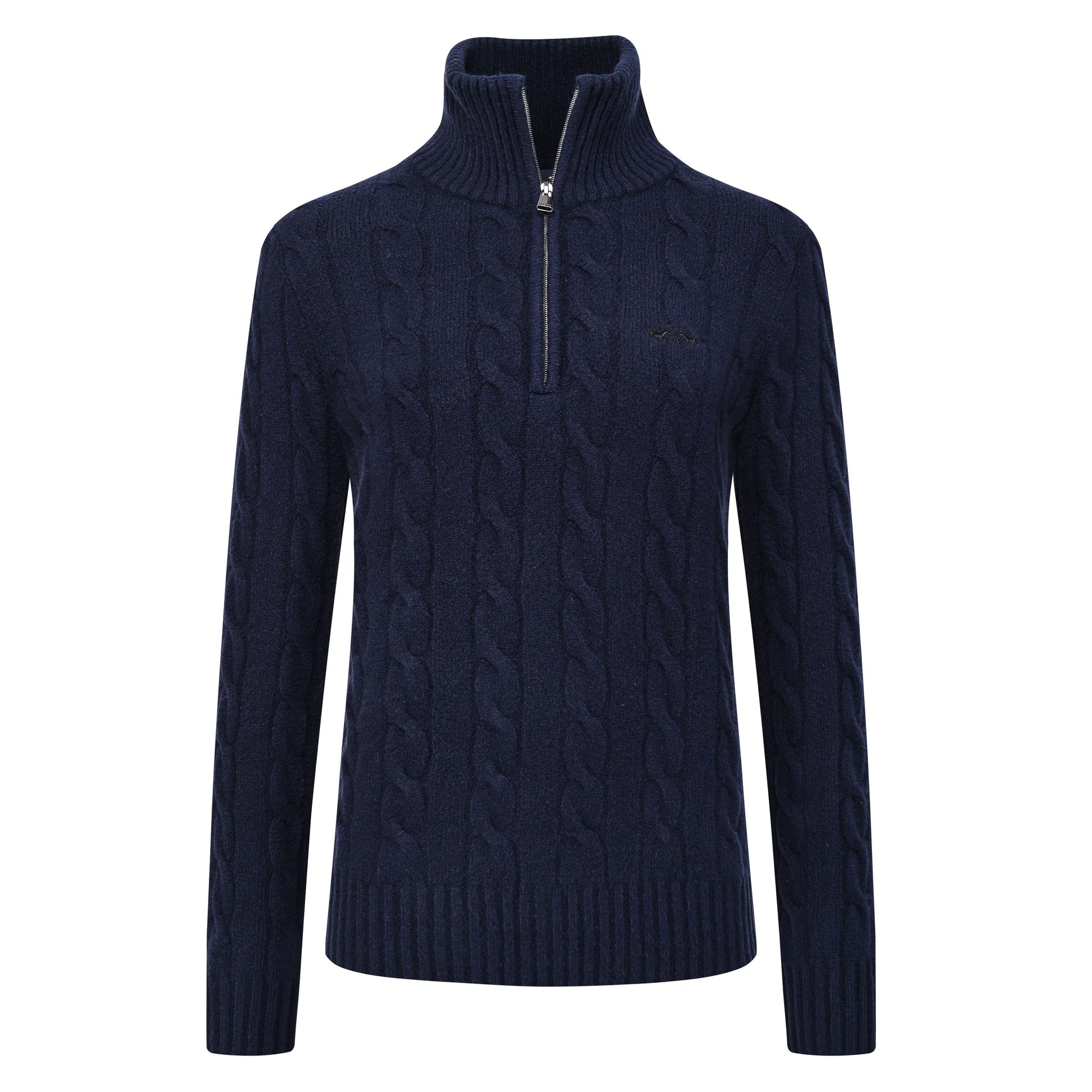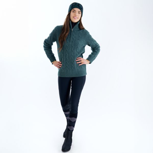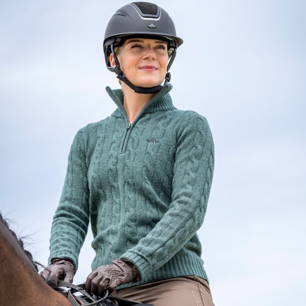 Step into a world where elegance meets comfort with the Pullover HVP-Dunya, your new statement piece that combines the essence of polo tradition with contemporary fashion. Delight in the lush comfort of the special cable knit, designed to keep you warm and stylish during those crisp morning rides or relaxed evenings at the club. Featuring a chic high stand-up collar, this pullover perfectly balances style with functionality, making it an essential addition to any fashion-forward equestrian's wardrobe.