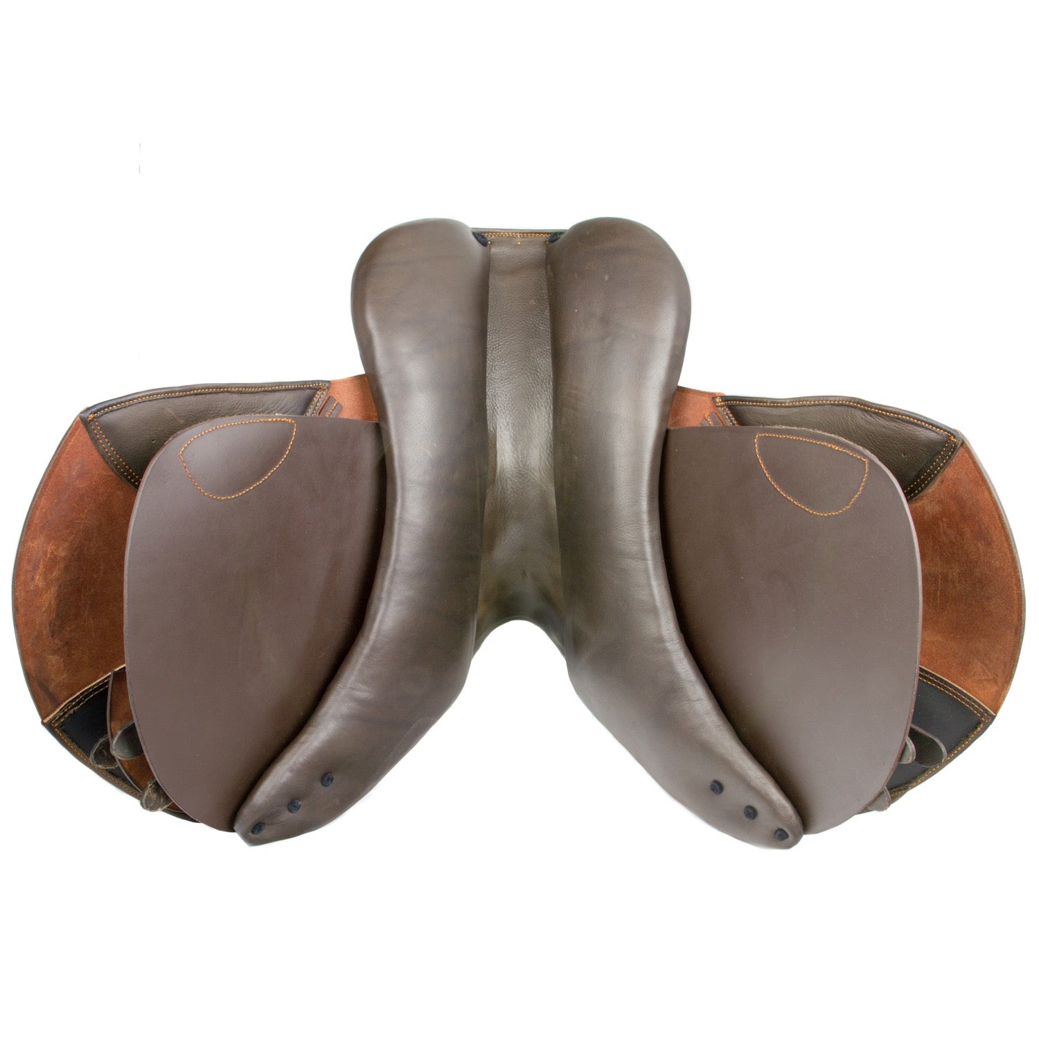 - Soft custom upholstered French sandwich cushions. These are only fastened at certain points and, thanks to the independent, free suspension, enable an exceptionally good fit and great freedom of movement for the spine. The seamless, short panels follow the line of the horse's back. As a result, this saddle can be adjusted very well, especially for short horses.