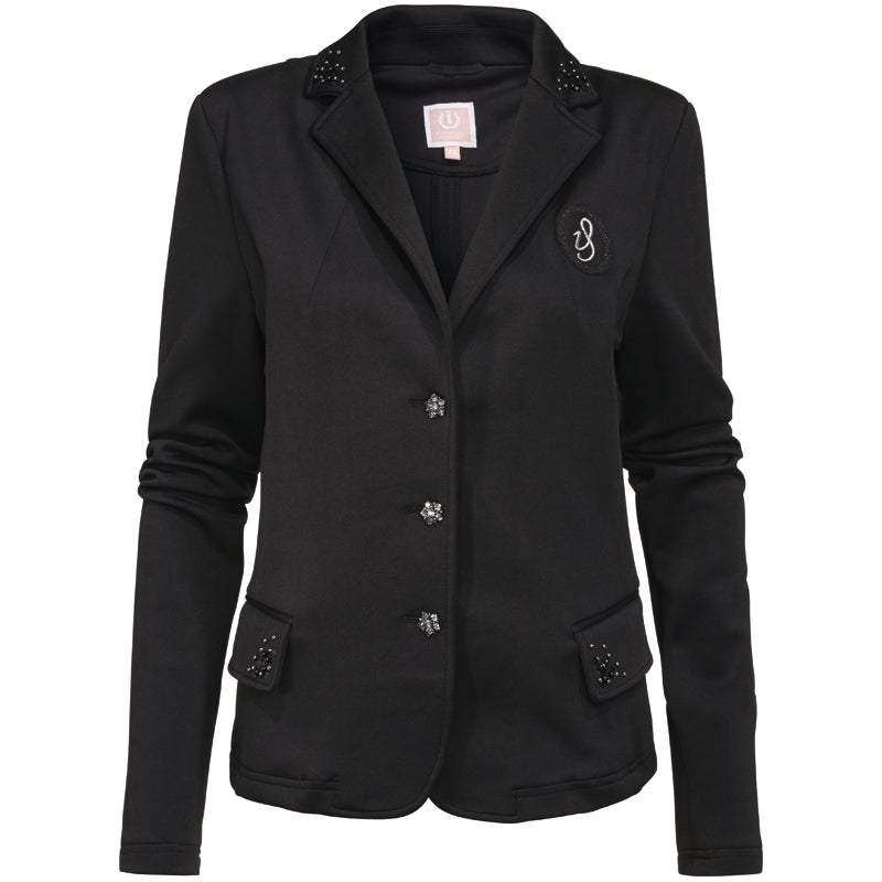 Sacou Bernice petit with decorative sequins and beads on collar point and pockets. Logo embroidery on collar.