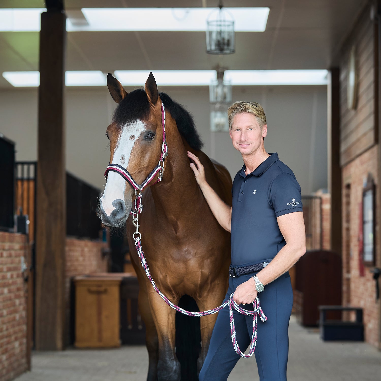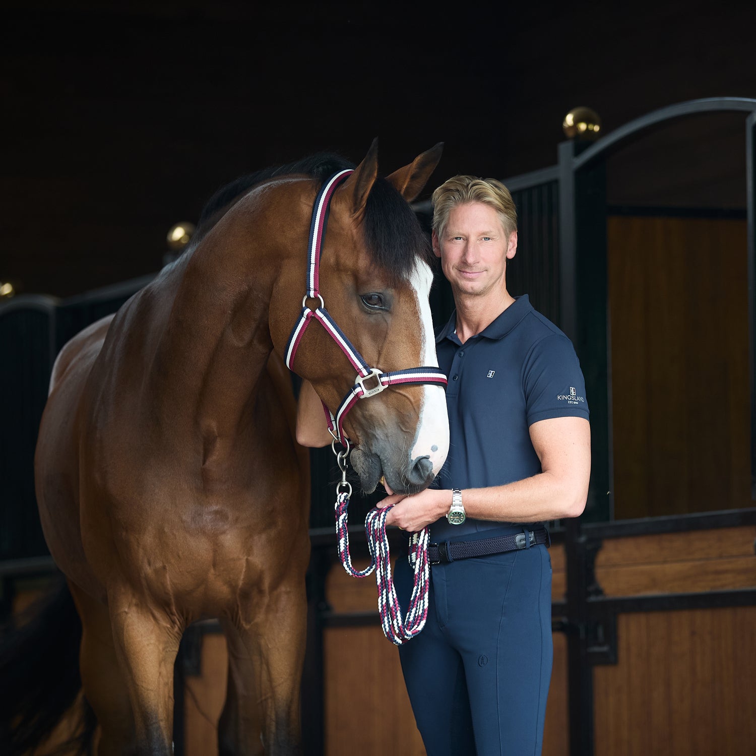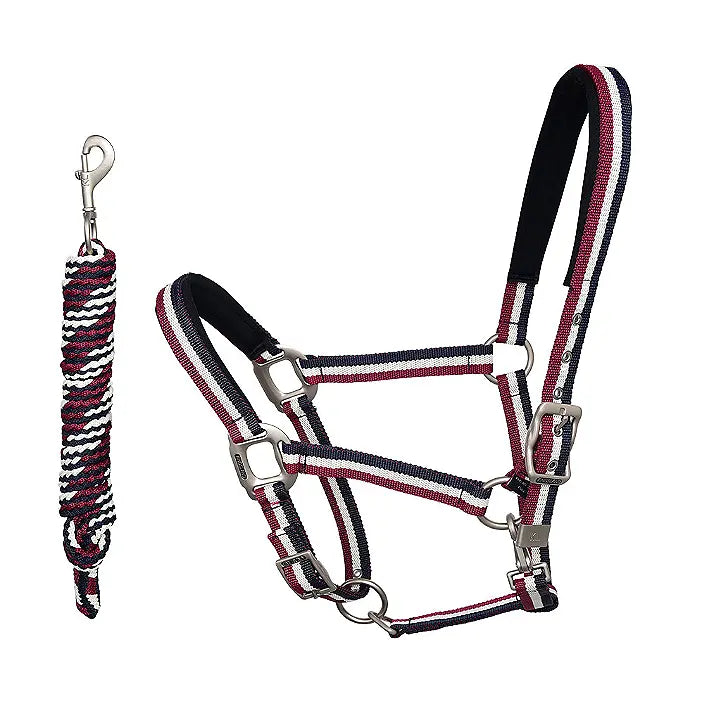 The halter and matching rope that goes above and beyond in terms of comfort, style, and function! Every detail on this headcollar set has been lovingly designed for optimum performance. With sturdy metal fastenings that sit flush with the horse’sface, an adjustable noseband, under jowl clip, and adjustable crown piece with metal Kingsland strap-end cover! Made from durable and long-lasting nylon, with an inner neoprene lining at the muzzle and poll to ensure optimum