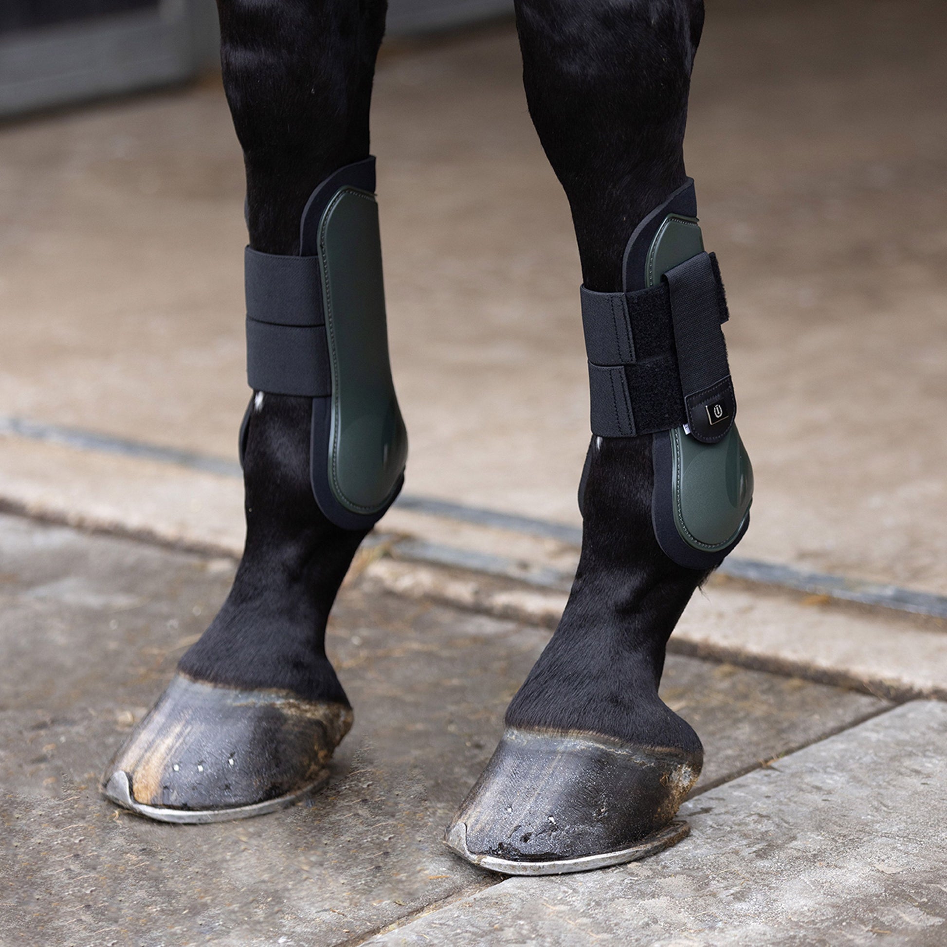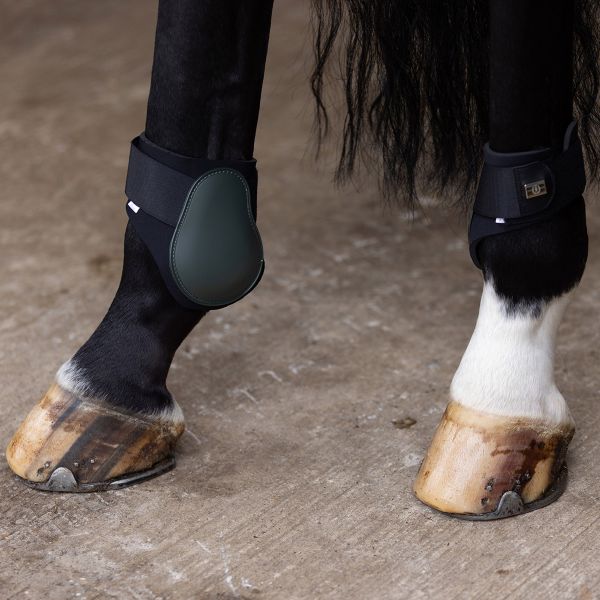 The tendon boots protect your horse with a TPU shell on the inside and a neoprene lining. With our decorative Imperial Riding coin on the closure. The fetlock boots protect your horse with a TPU shell on the inside and a neoprene lining. With our decorative Imperial Riding coin on the closure.