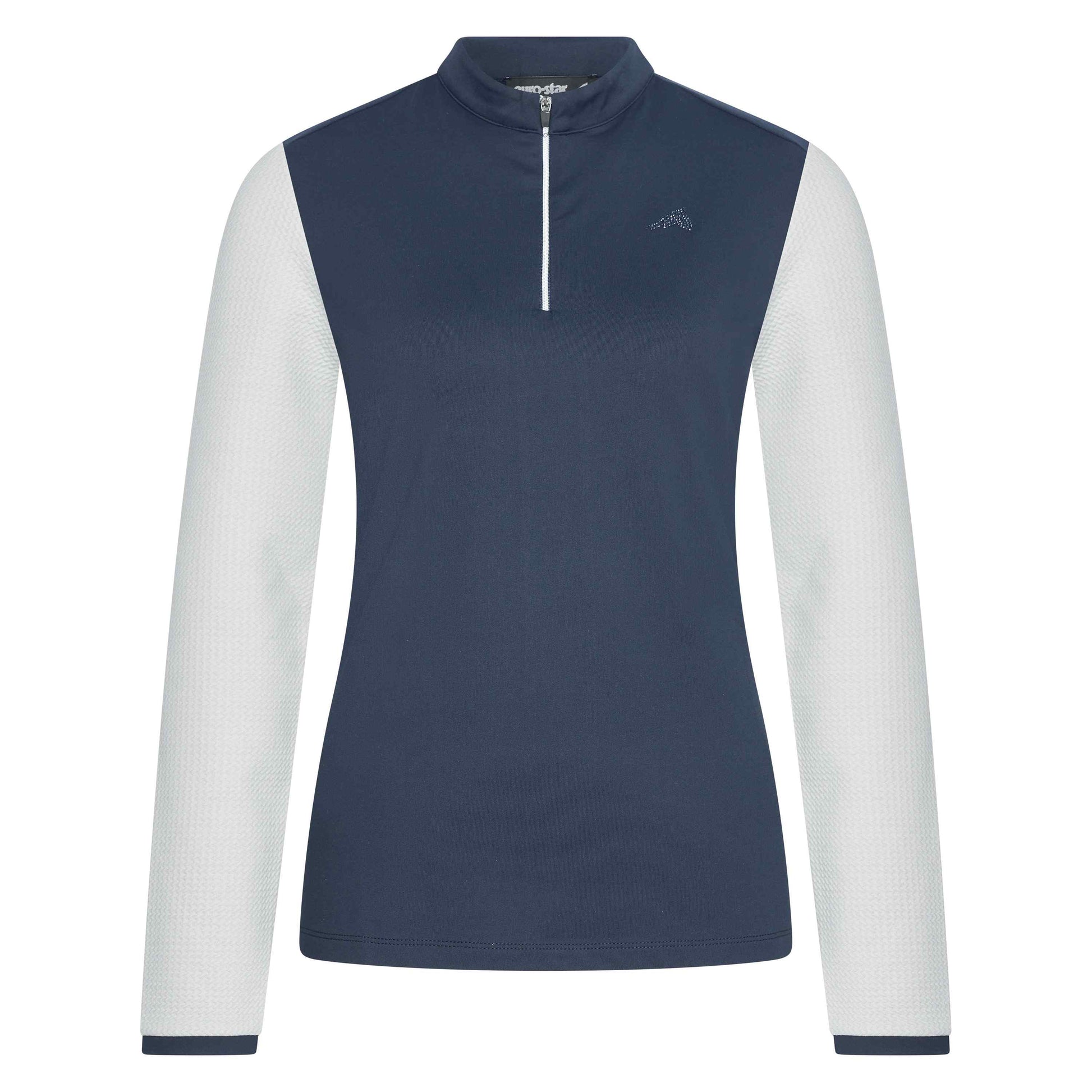 Ultra soft first layer * Combination structure fabric * Half zip * Rhinestone artwork on left chest