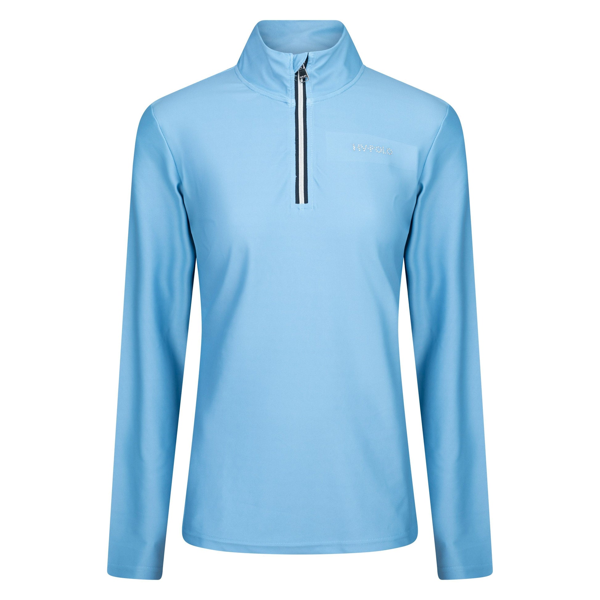 Sporty pully with zipper. Easy to combine and a must have for every equestrian wardrobe. Text logo on the chest in rich crystal clear rhinestones. The backside collar is nicely gathered in small pleats. The logo is placed under the centre back neck line and a small tab label in the side seam.