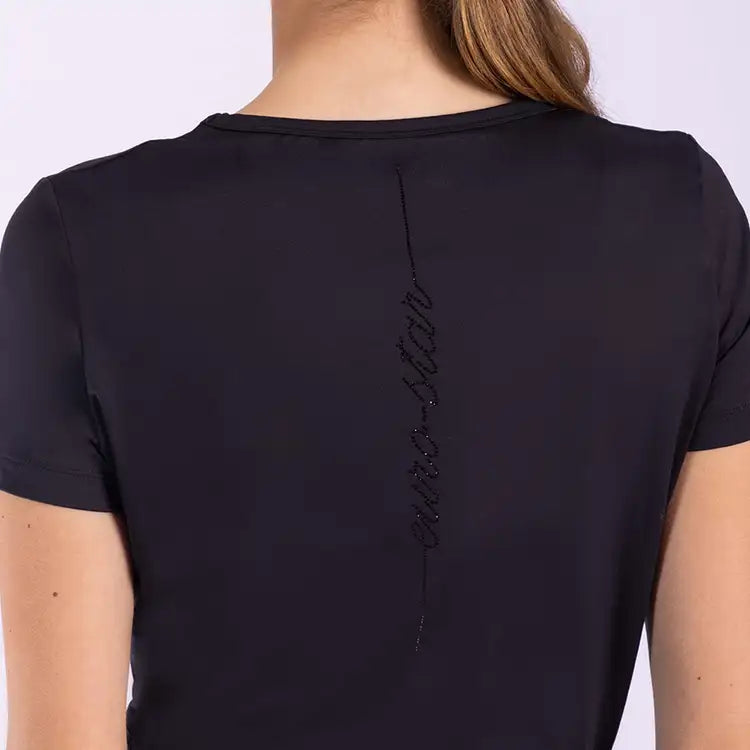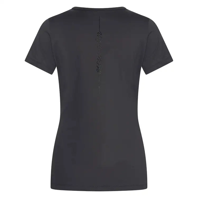 Fitted shirt with a logo of a horse head in rhinestones on the left chest. The shirt is made of a quick-drying and breathable fabric, making it comfortable to wear during sports.