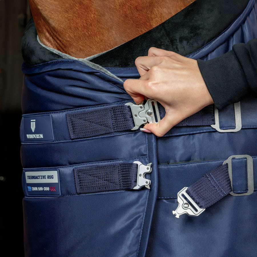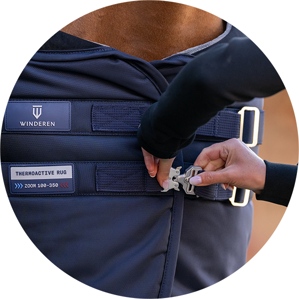 Secure fasteningIn the winter Winderen Thermoactive Zoom 100-350 version, we use military-grade, durable, and secure fastenings. They can be opened and closed effortlessly with one hand, while the mechanism prevents the horse from undoing the chest or belly straps.
