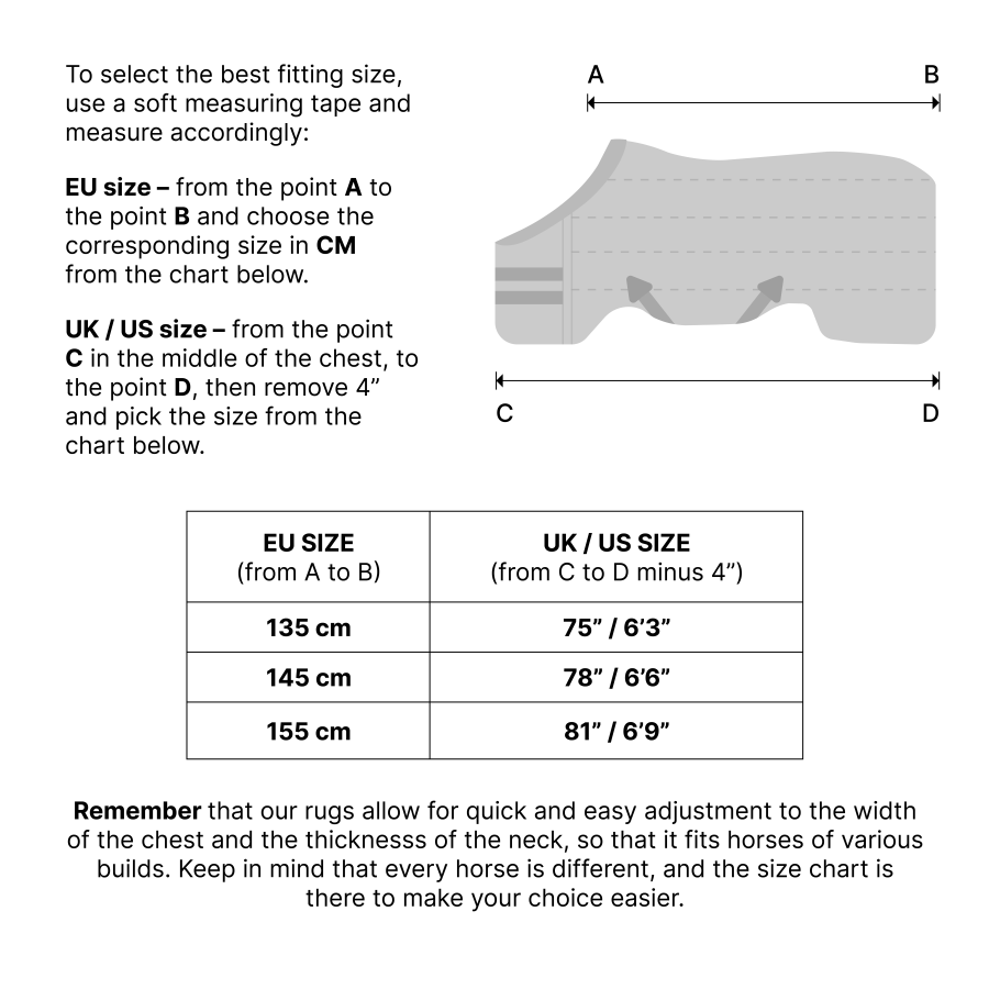 Benefits for the riderOne rug that replaces many - no more changing rugs depending on the weather. From now on, one rug for the whole season.