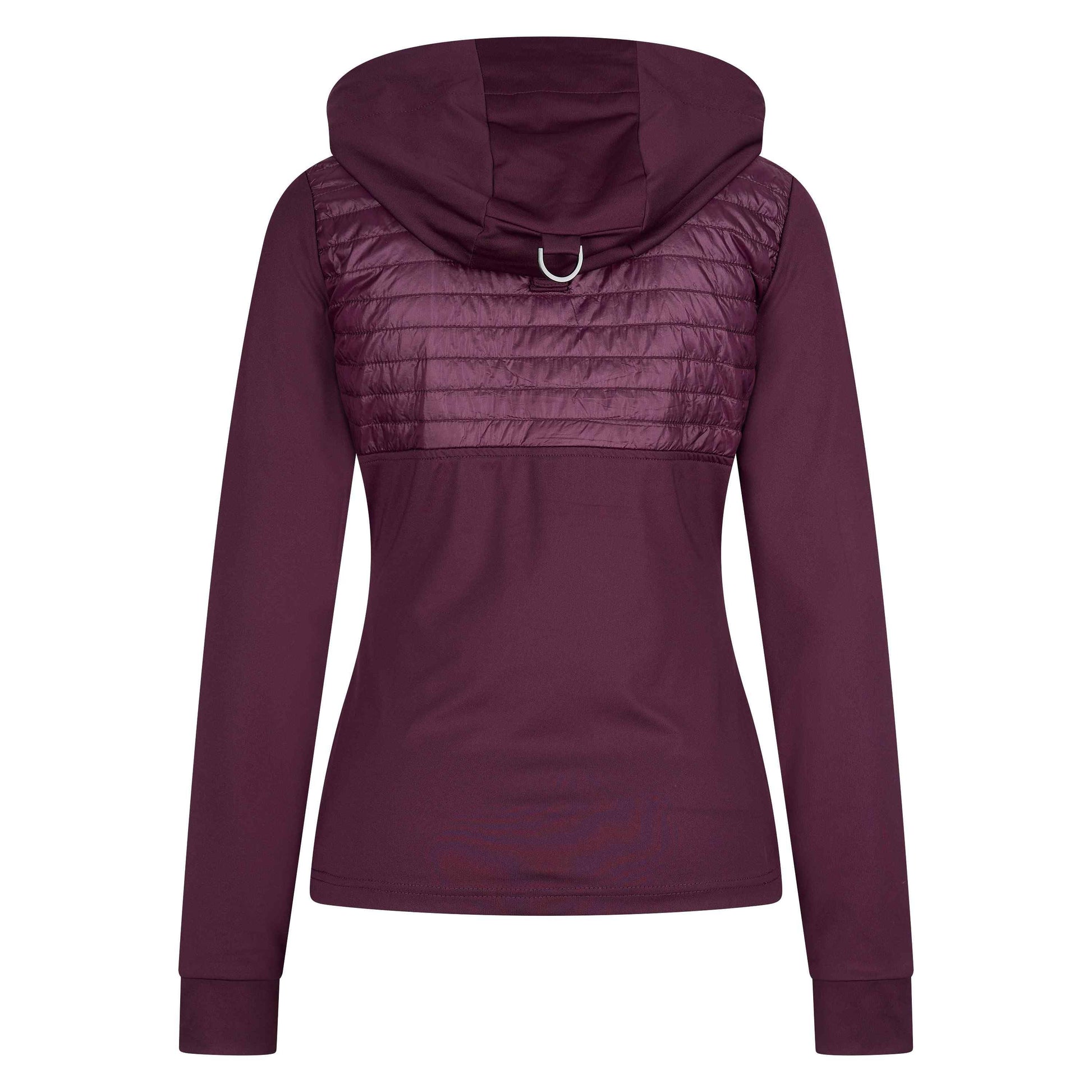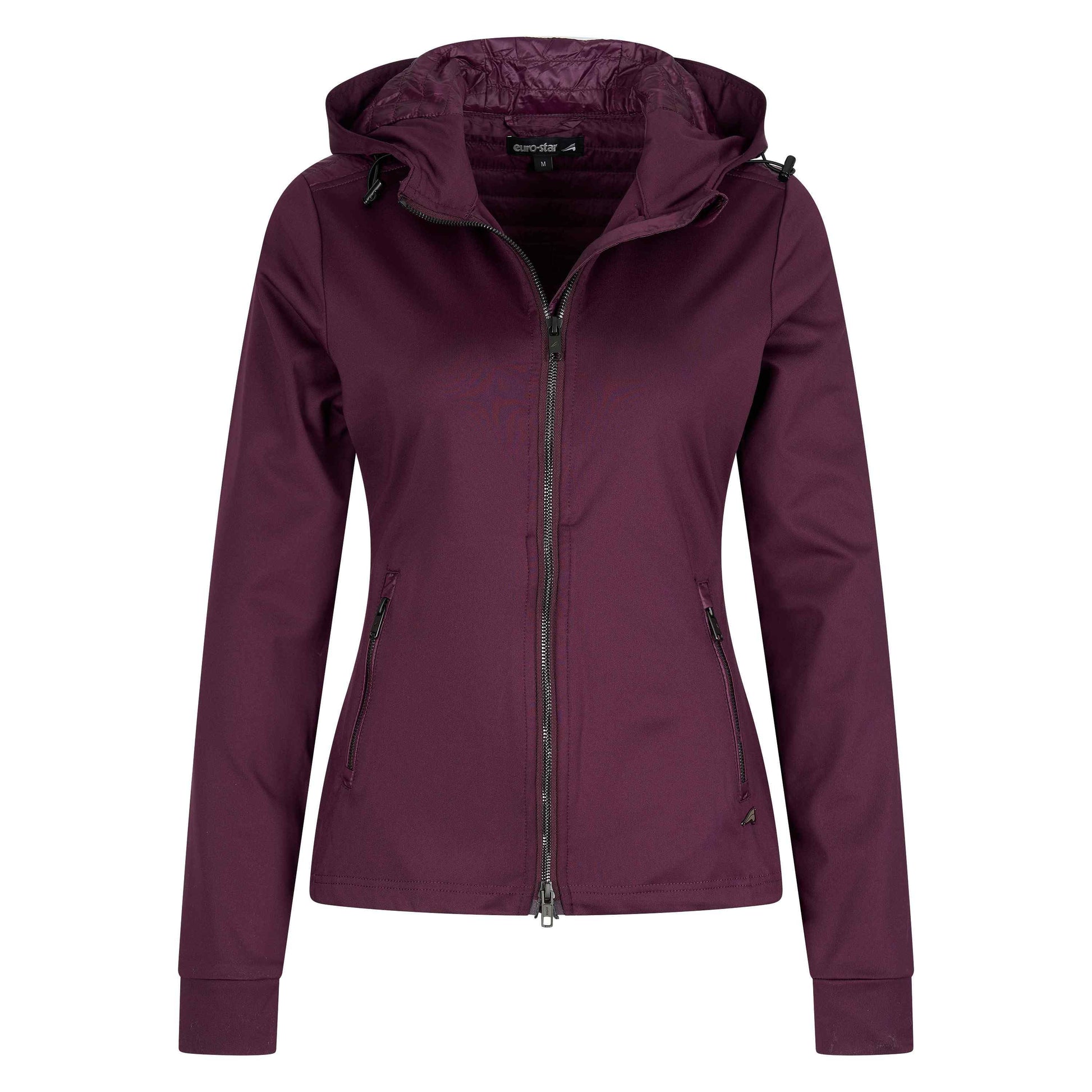 4-Way stretch • Powerstretch jacket • Fitted Style • Short length • Quilted lined backpart and front shoulderpart • Wind catcher behind CF zipper • CF 2-way zipper with chin protecter • Hood with elastic cord • Strap to secure hood • Inside hood with quilted shell fabric • Zipper pockets • Rhine stone logo at left sleeve • Metal plate at left hem