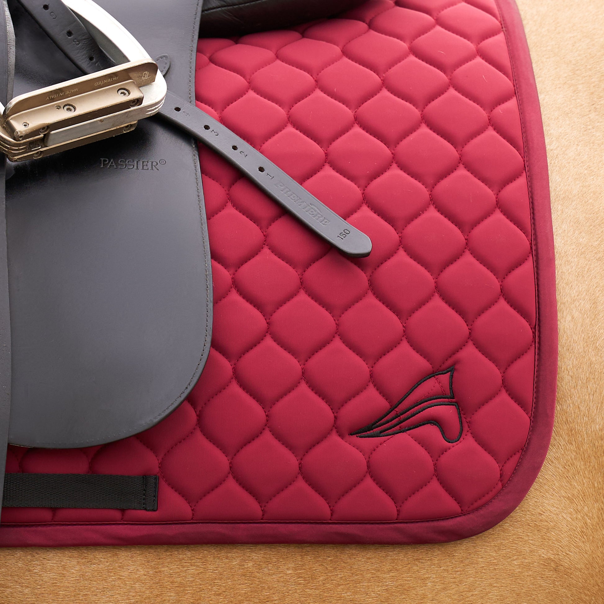 This minimalistic yet chic saddlepad is crafted from high-quality cotton for comfort and durability. It features an elegant satin binding and detailed embroidery artwork, adding a touch of sophistication. The backline is enhanced with stylish logo webbing tape, making it a standout piece for any rider.