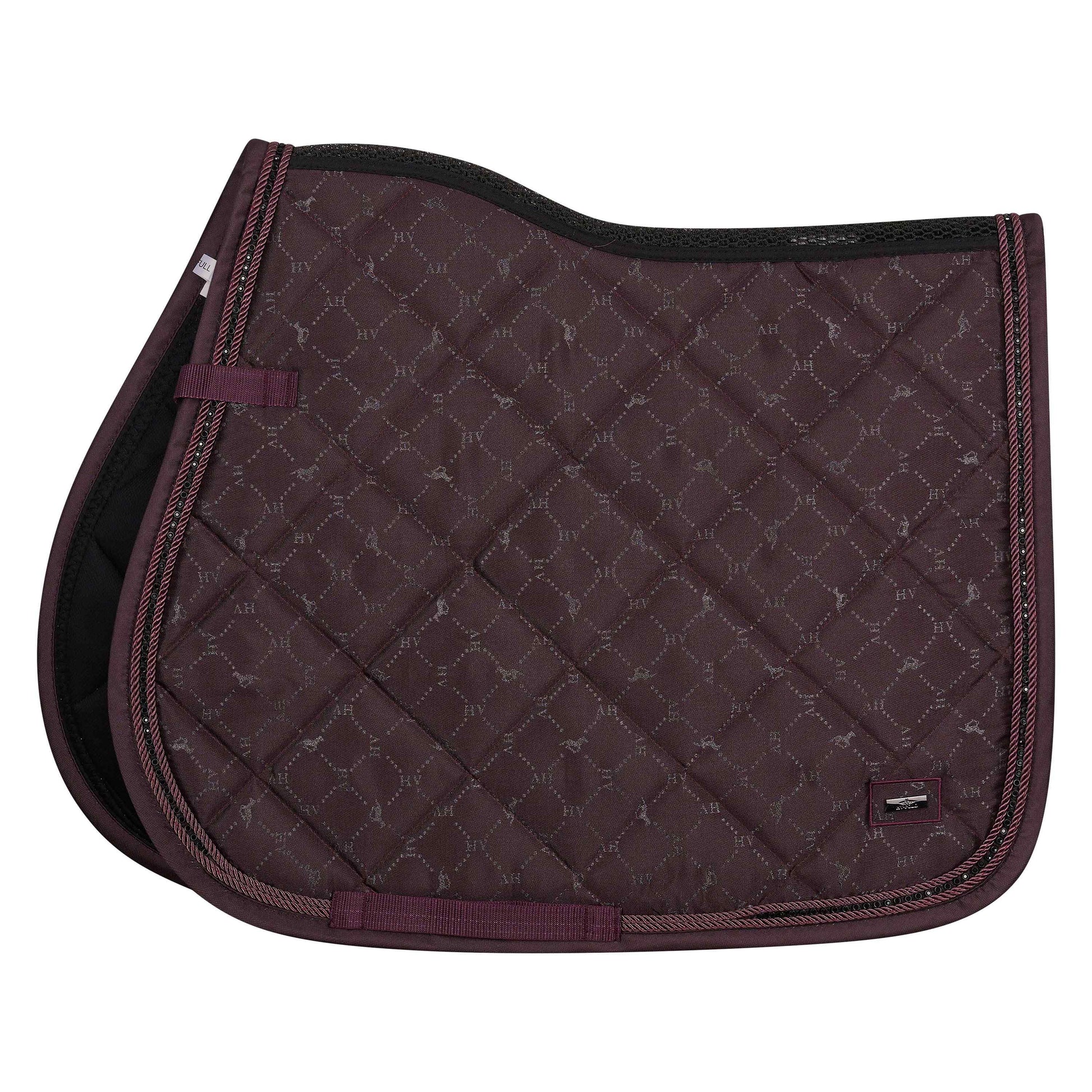 All over jacquard material * Square quilting * Mesh backline for airflow * Mesh lining * Breathable * Front and girth strap * Fancy ropes and rhinestones along binding * Metal logo plate