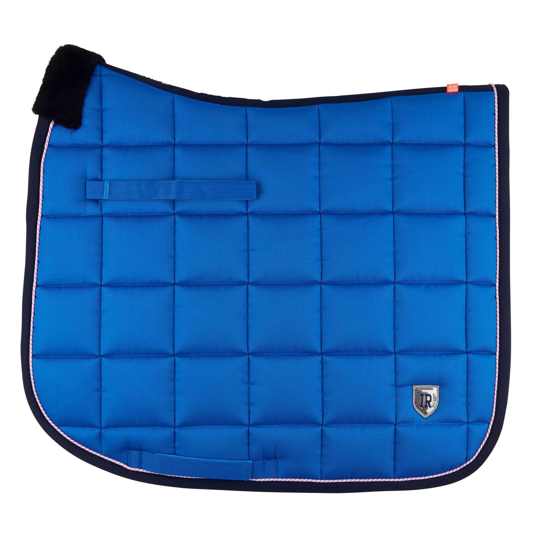 Călărește ca o vedetă cu acest valtrap de dresaj. Bordura este realizata dintr-o culoare contrastantă pentru a înveseli designul. Insigna este frumoasă, dar simplă. La greabăn există o parte moale din blană pentru a proteja greabanul calului de frecare. Căptușeala completă este extra moale. Perfect!