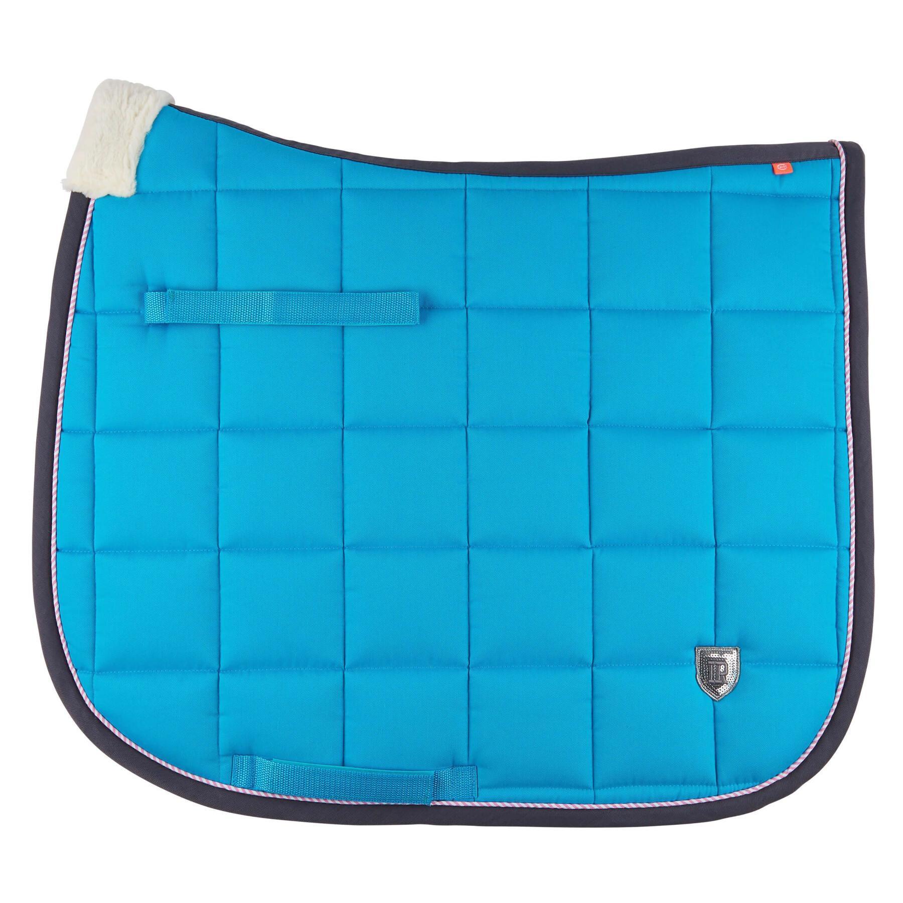 Ride like a star with this all purpose saddlepad. Both binding and piping are made from a contrast color to bright up this style. The badge artwork is beautifull yet simple. At the withers there is a soft fur part to protect the saddlepad from rubbing at the back of the horse. The lining of the complete saddlepad is extra soft. Perfect!