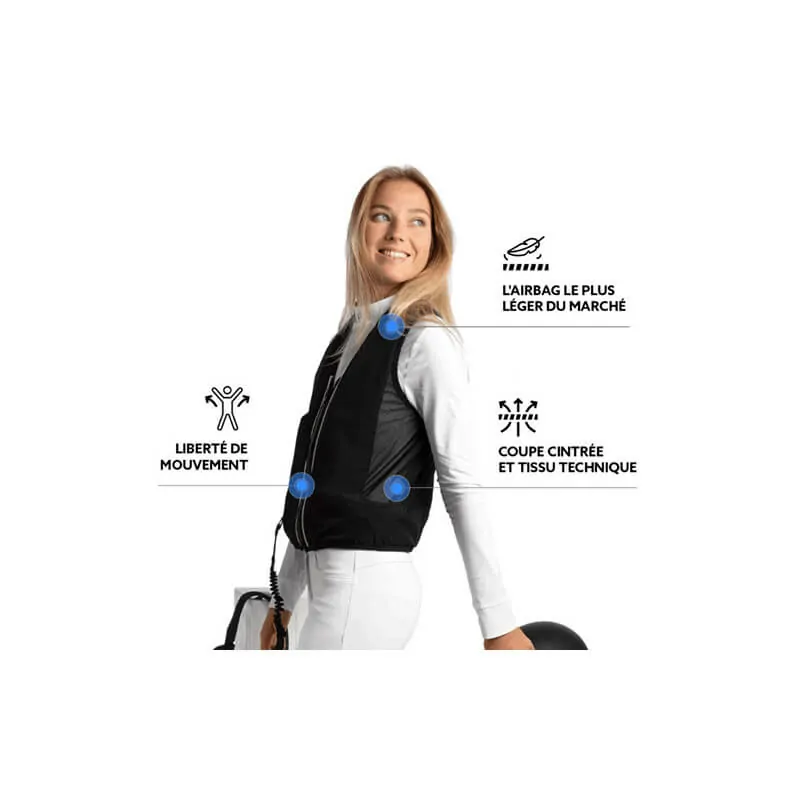 Cu SAFEFIT, porți o vestă cu airbag fără să simți că purtați una. SAFEFIT este ușor (mai puțin de 600 de grame) și nu vă restricționează mișcările. Fabricat din materiale elastice, vă urmărește toate eforturile fără frecare. Țesătura sa microperforată permite aerisirea, astfel încât să poți purta SAFEFIT vara și iarna. Este ușor să uiți odată ce te afli în șa și nu creează nicio grosime suplimentară